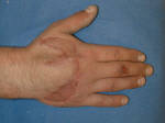 Einengung des Mittelnerven (nervus medianus) im Handgelenkbereich. Führt zu Schmerzen und "Taubheit" der mittleren 3 Finger, typischer Weise nachts. Zur Diagnosestellung ist die Durchführung einer Spezialuntersuchung (Elektromyographie; EMG) durch einen Neurologen erforderlich. Bei der Operation wird das einengende Gewebe über dem Nerven gespalten.